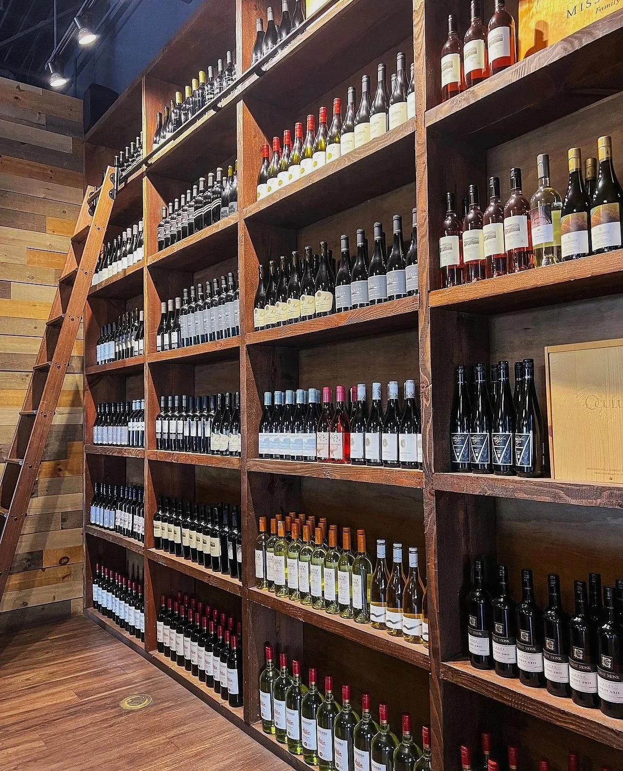 While at first glance this doesn’t appear to display any sort of painting prowess, it is an example of how we can deal with natural wood. This absolute unit of a wine rack was built with rough-sawn Douglas Fir, and was treated for aesthetics and longevity with stain and a satin clear. The maple ladder on rollers was given the same care in what turned out to be quite a display at Il Mercato in West Kelowna.
