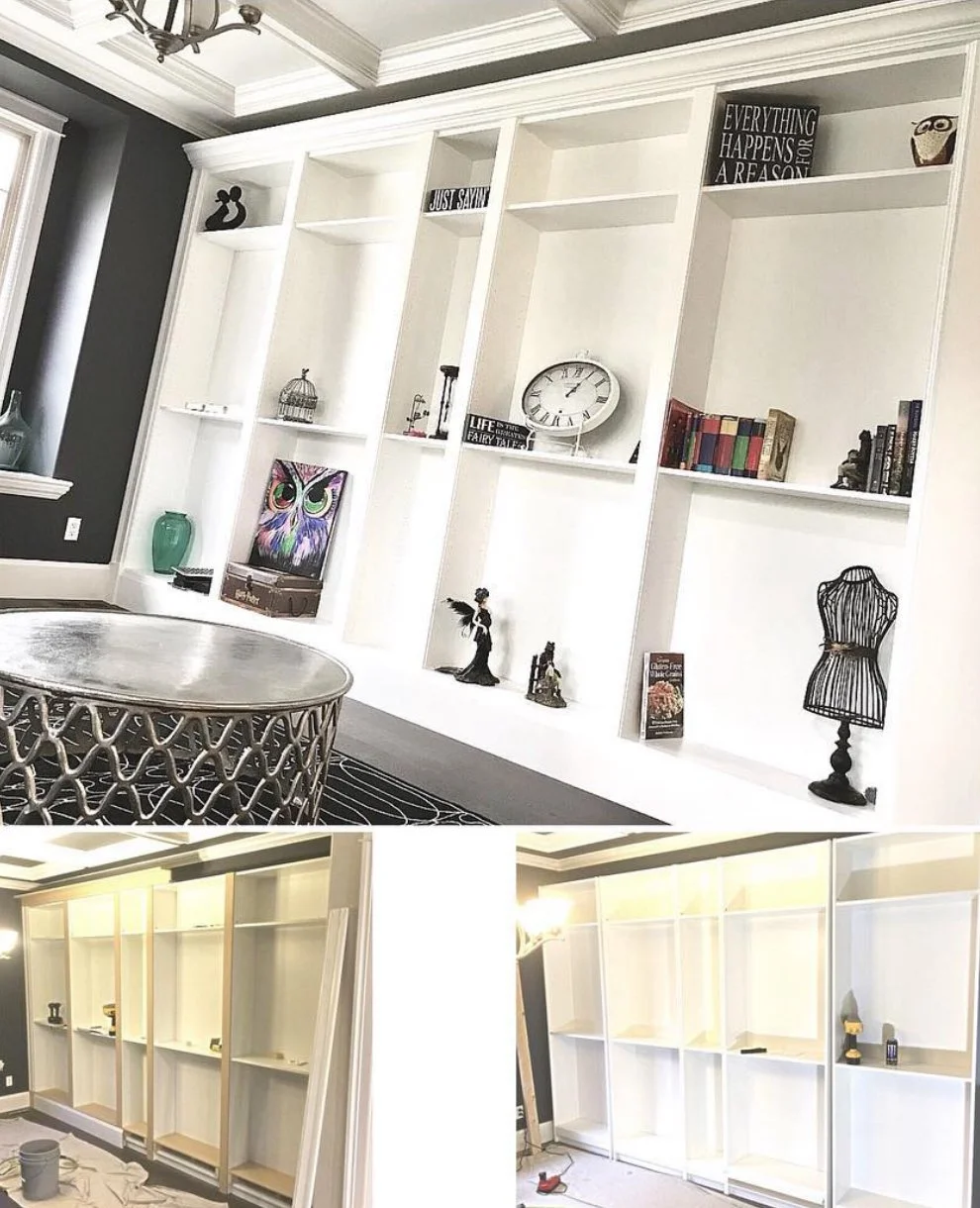 When you want to add a little extra to your den with crown mouldings and a built in bookcase. Is that custom cabinetry or some clever work with Ikea shelves? Once it was all prepped and sprayed it look incredible!
